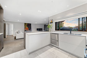 • Modern Designer kitchen with sleek cabinetry, ample storage and breakfast bar