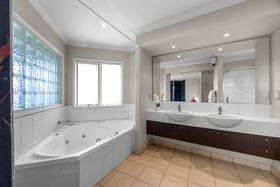 Consisting of four bedrooms, the large master enjoys an ensuite (including spa bath) and walk-in-robe plus a balcony overlooking the expansive lawn. The three minor bedrooms are generous sized doubles and there is a large family bathroom with separate toilet. There is also a guest powder room located downstairs.